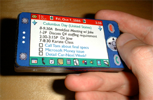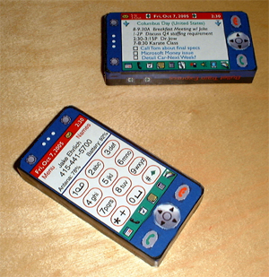 The essence of Bullet Train was that you should have all your important info on one screen including your appointments, dated to-do items and you should be able to launch any program in just one tap. I invested several hundred hours working on the original Bullet Train UI. I sent a detailed presentation to Bill Gates and a copy to the Pocket PC division at Microsoft. A representative from Microsoft's PocketPC team contacted me and told me they did not want to modify their existing user interface. After my Microsoft experience I kept going on my own making models and experimenting with UI and form factor. The pictures below are models I made three years ago. |